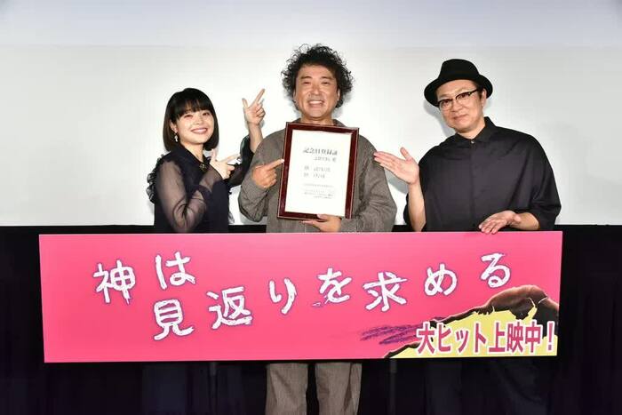 ムロツヨシさんが主演を務める映画「神は見返りを求める」の初日舞台挨拶が、6月24日に行われ、ムロさん、岸井ゆきのさん、?⽥恵輔監督が登壇しました。