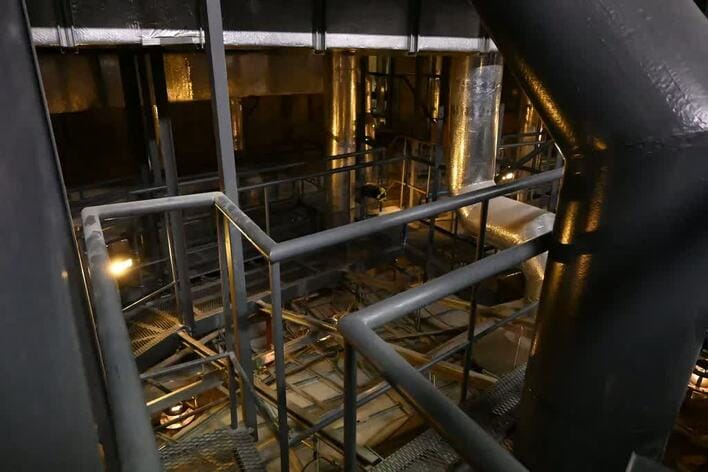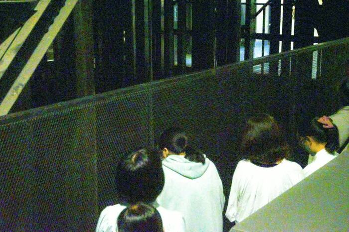 2階から4階まで階段を一気に登り、息が切れてきた頃に到着…と思いきや、金網が張り巡らされた迷路のような空間が。傾斜のきつい段差をさらに登り降りし、転ばないようにドキドキしながら進むと、ようやく「第二シーリング(ピンルーム)」にたどり着きました。