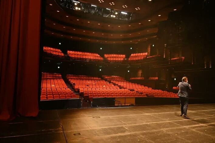 ツアーで見られるのは、演劇・ダンス等の公演を行なっている劇場「プレイハウス」。客席数834席、約60人規模のオーケストラピットを備えています。