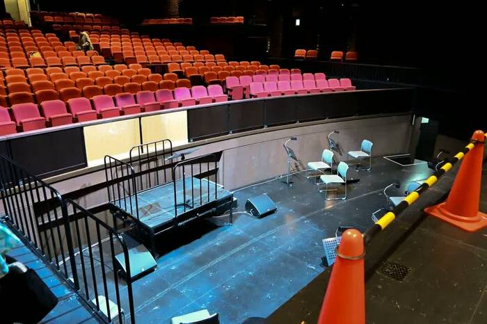 オケピが固定(常設)されている劇場もありますが、東京芸術劇場は“可動式”。客席を移動させてオケピを作っているのです。もちろんここで生演奏ができますし、場合によってはピット内に設置したスピーカーから音を流すことも可能。作品に応じて臨機応変に使えます。