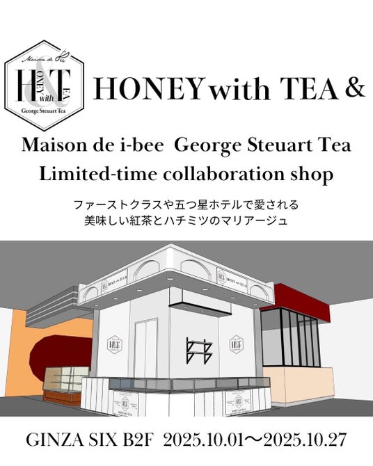 オーストラリア産プロダクトブランド【Masison de i-bee】(販売:株式会社ZUKA)とスリランカの老舗紅茶ブランド【George Steuart Tea(ジョージスチュアートティ)】(販売:株式会社味とサイエンス)は10月1日(水)から27日(月)まで、GINZA SIX地下2階「イベントスペース」にて期間限定のコラボショップをオープンします。「HONEY with TEA &」と銘打ち、秋冬のギフトにもおすすめの商品など、特別なラインナップをご用意しています。