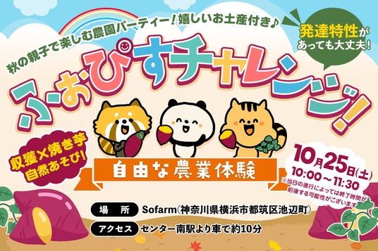 子供の発達に困りごとを抱える保護者向けコミュニティサイトとして運営している「ふぉぴす」が、2025年10月25日、神奈川県横浜市都筑区のオーガニック農園「Sofarm」にて農業体験イベントを初開催します!
