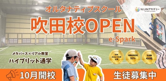 株式会社NIJIN(本社:東京都江東区、代表取締役:星野達郎)が運営する不登校オルタナティブスクール『NIJINアカデミー』は、2025年10月2日(木)、大阪府吹田市に新拠点『NIJINアカデミー大阪吹田校』を開校いたします。