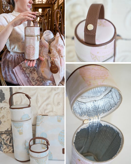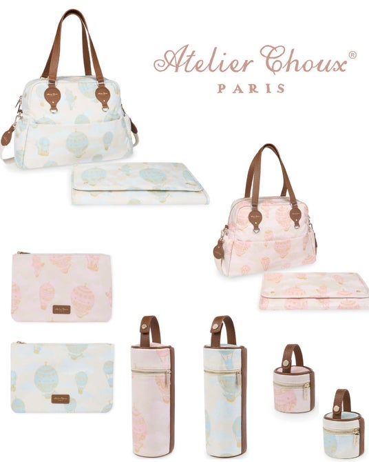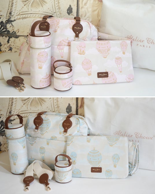 おくるみでも人気の気球柄を織り込んだジャガードと本革を使用したワンランク上の高級感のある2wayバッグやポーチなどを販売!!