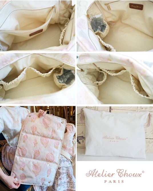 収納に便利な「Atelierchoux」ロゴ入り布巾着付き。