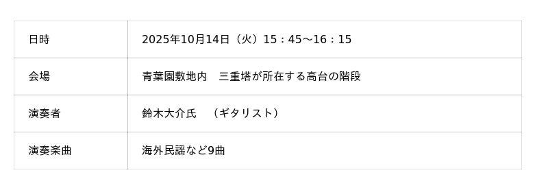 ※屋外でのギター生演奏のため、雨天の場合は10月16日(木)に延期いたします。