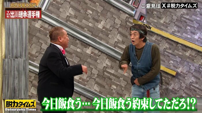 この日、出川さんは堀内さんと食事に行く予定だったのに、急遽、山下さんへのサプライズの仕事(実は『脱力タイムズ』出演)が入ったという経緯があったため、(堀内さんがいることが)「おかしい!おかしい!」と言って、うんざり。
