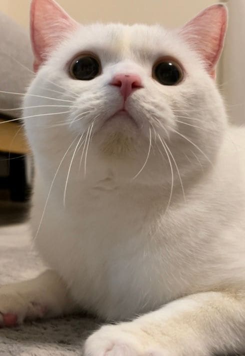 大きな目が愛らしい猫の「しらたま」くんは、3歳7カ月の男の子。