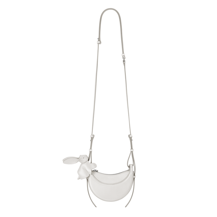スペイン・ウブリケのアトリエで最高品質のカーフレザーを用いて仕立てられるこのバッグは、丁寧なステッチにクラフトマンシップが宿ります。バッグには、伝承にちなんだ「月のウサギ」をモチーフにしたチャームを添えました。刺繍ステッチで描かれた長い耳と小さな鼻が愛らしく、スナップで簡単に着脱可能です。