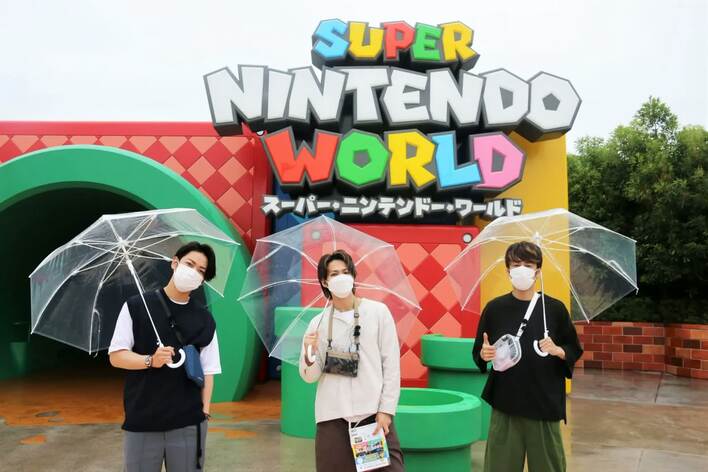 まずは、マリオの世界を体感できる話題のエリア「スーパー・ニンテンドー・ワールド™」へ。一度来た事があるという中丸さんは、「マジで感動する!最高よ。(コメントは)それだけにしておきます」と、亀梨さんと上田さんにこのエリアの魅力をアピールします。
