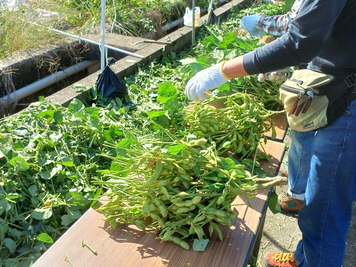 JAF奈良支部では、奈良県の伝統野菜である大和野菜をはじめ、県産の野菜や農産物の魅力を伝えるため、地元農家の協力を得て栽培や収穫といった農業体験イベント開催に注力しております。7月に苗を植え付けてから3カ月、立派に実った黒豆の収穫です。