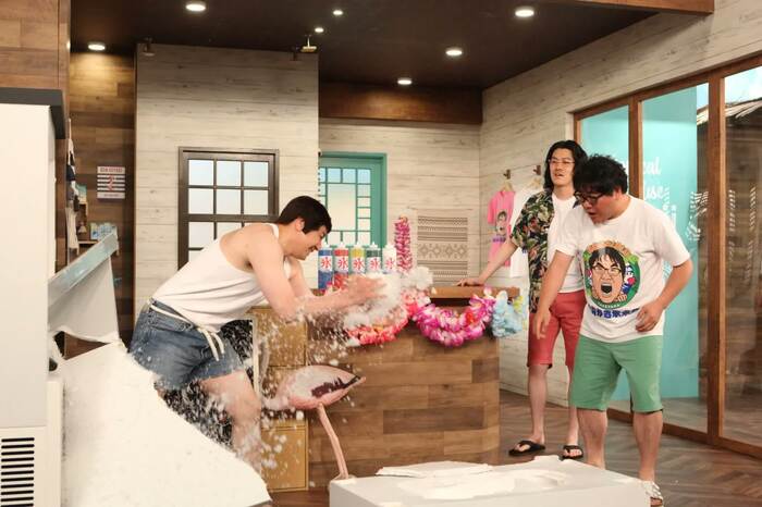 ほかにも、長田さん演じる新進気鋭のアーティストが、「家電量販店で空気清浄機をずっと見ている人」、「環七のラーメン屋に毎日いるやつ」など独特のテーマを掲げ、アイライナーを用いて顔にペインティングするコント「似て展」や、松尾駿さん演じる忍者“ミッドリくん”がCGに使用するグリーンバックを用いて笑えるイタズラを連発する「忍者ミッドリくん」など、新作コントが続々登場。