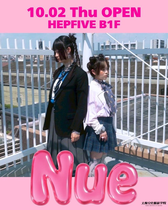 デザイナーおよびファッション人材を育成する大阪文化服装学院(OIF、学校法人ミクニ学園 理事長:豊田晃敏 所在地:大阪市淀川区三国本町)は、10月2日、大阪・梅田の大型商業施設「HEP FIVE」に学生ショップ「Nue(ニュー)」を期間限定でオープンいたします。テーマは“裏原×制服”。ブランドマネージメント学科の学生が企画から運営までを担い、新しいファッションスタイルを提案します。