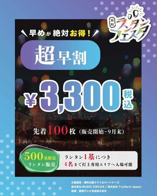株式会社TryHard Japan(TryHard Holdings Limited【NASDAQ】: THHの子会社)は、2025年11月15日(土)、扇町公園 広場にてランタンを夜空に打ち上げる参加型イベント「扇町ランタンフェスタ vol.4」のランタンチケットを本日18時より販売することをお知らせいたします。
