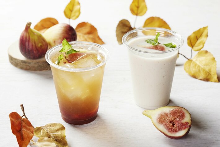 写真左「紀の川いちじくのアイスティーソーダ」、右「紀の川いちじくの杏仁スムージー」イメージ