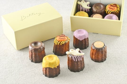 名古屋の洋菓子店「Buttery(バタリー)」では、厳選したバターを使用した、香り高いスイーツを多数取り揃えています。このたび10月2日(木)より、Buttery本店とButtery大名古屋ビルヂング店、オンラインショップにて『ハロウィンギフトアソート』を期間限定で発売します。北海道バターに、紫芋やかぼちゃ、黒ゴマをあわせた“ハロウィンカラー”のフィナンシェが、この季節のイベントを盛り上げます。また、昨年大好評だった、おばけのデコレーションがキュートな『焼きたてカヌレ6個セット(ハロウィン)※店頭販売のみ』も復活します。