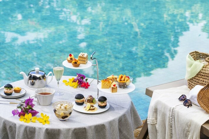 黒糖尽くしの滞在でアフタヌーンティーを楽しむ様子