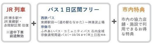 名称:むなかたおでかけ1Dayきっぷ発売価格:2,000円(税込)大人・小人共通