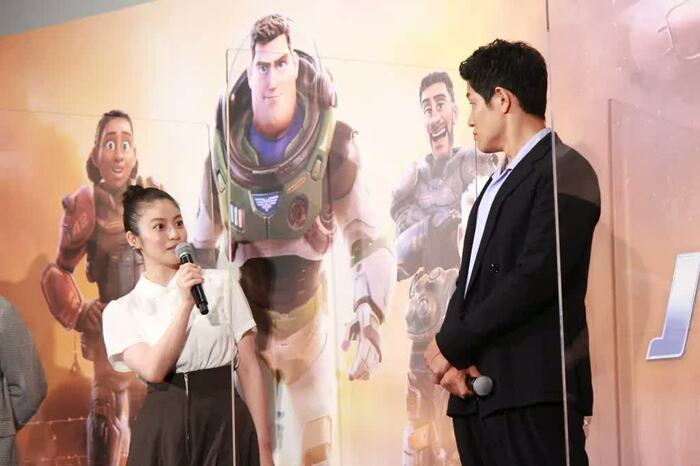 主人公のバズ・ライトイヤー役の鈴木さんは、「無限の彼方へ、さあ、行くぞ」と、バズのセリフを引用してあいさつ。