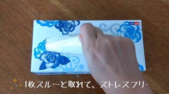 サトちゃんさんは、まとまってティッシュが取れてしまう理由について「隙間がないから」とし、「最初はパンパンに入ってて外側に膨張してるから、ティッシュが外側に出よう出ようと、ティッシュ同士がひっかかって、まとめて出てしまうことが原因です」と解説。