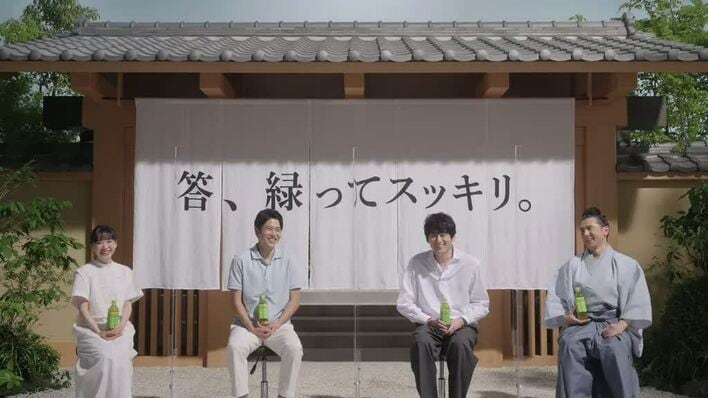 本木雅弘さん、芦田愛菜さん、博多大吉さんがシリーズで出演するサントリー緑茶「伊右衛門」のCMに、内田篤人さんが初出演、撮影に臨みました。