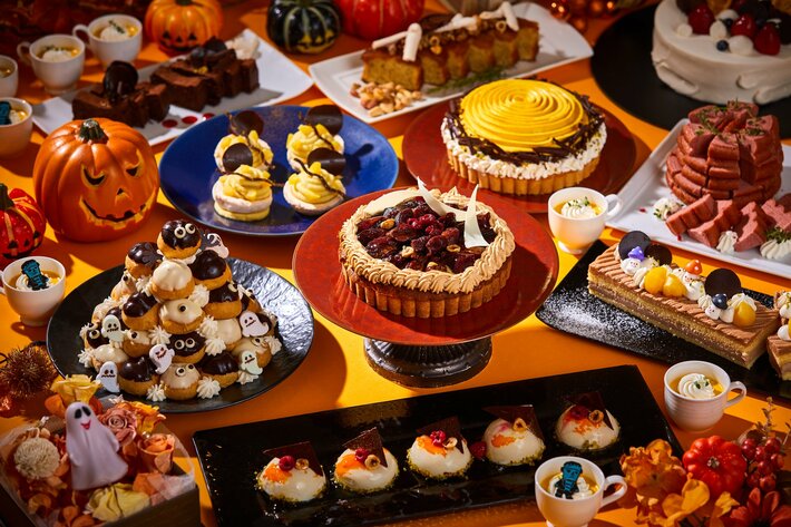 今回のテーマは「秋の味覚&HALLOWEEN」。秋のフルーツをふんだんに使った「いちじくのタルト」や「洋梨とぶどうのムース」などの期間限定スイーツに加え、HALLOWEENならではの「おばけシュークリーム」など、見た目も楽しい特製デザートが勢ぞろいします。