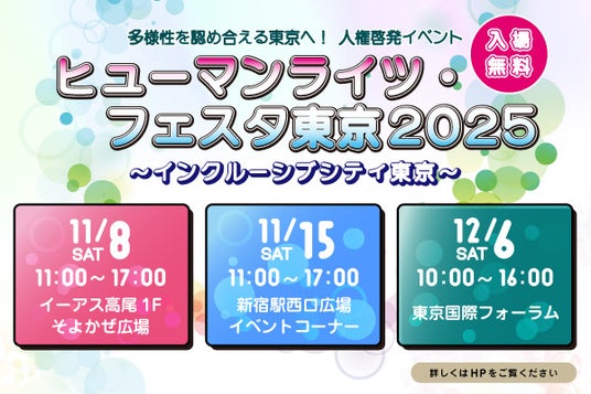 その一つとして、幅広い都民の方に、人権の大切さについて考え、理解を深めていただくため、人権啓発イベント「ヒューマンライツ・フェスタ東京2025」を開催します。