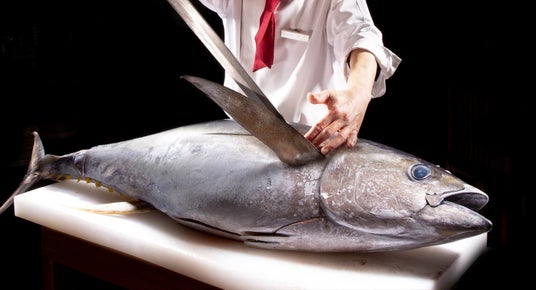 毎晩開催される豪快なまぐろ一刀おろしもお見逃しなく。さばいたまぐろは、刺身やステーキでご提供します。