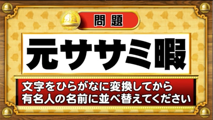 「元ササミ暇」。この文字をひらがなに変換してから、ある有名人の名前に並べ替えてください。