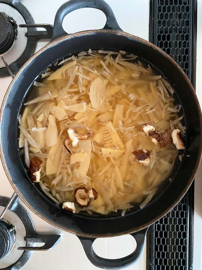 お鍋に、たけのこやゴボウ、しいたけを入れて、何を作ったのかというと…?