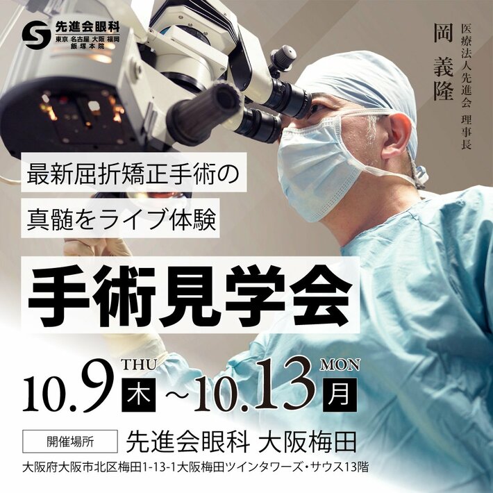 医療法人先進会 眼科(本院:福岡県飯塚市、理事長:岡義隆)は、第79回:日本臨床眼科学会/第41回:視機能看護学会の会期中、先進会眼科 大阪梅田にて、実際の手術をライブ見学できる特別プログラムを開催いたします。