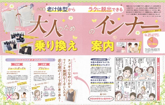 年齢とともにバストの位置が下がり、お腹はぽっこり、お尻は四角くなった気がする…。40~50代はそんな悲しい体型変化が起こりやすい年代ですが、諦めないで大丈夫! 今回はインナーのプロと一緒に、老け見えをラクに解消できるインナーを調査しました。優秀な大人のインナーに乗り換えて、老け見え体型をラクに脱出しちゃいましょう!