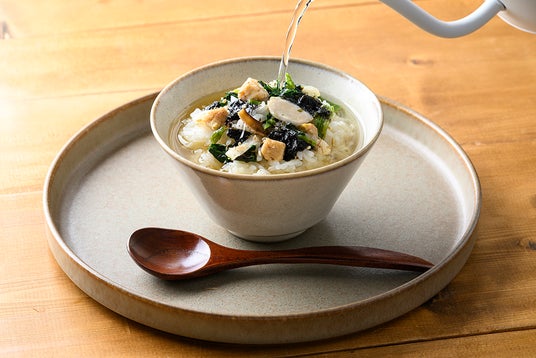 本商品は、1食あたり塩分0.9gとしながらも、韓国のりや和食材のうまみとたっぷりの具材を使用することで満足感のある味わいに仕上げています。