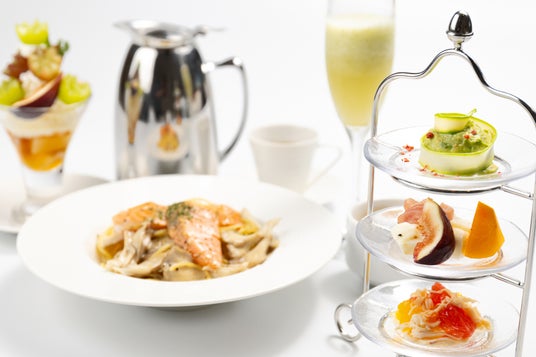 セット内容:三段仕立てのフルーツオードブル / 季節のミニパフェ / 季節のスムージー /