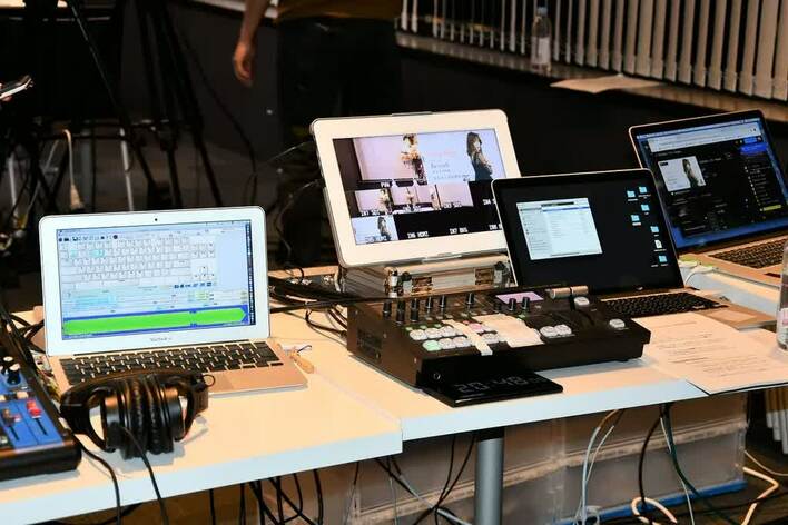 21時からの番組スタートに備え、20分前に配信会場に到着すると、スタッフが慌ただしく機材などをチェックしていた。昨今の状況もあり、部屋の換気もしながら、最少人数の限られたスタッフでテキパキと動く。現場は、あまりぴりぴりしすぎないように、との配慮からか、まだ控室にいる内田の行動パターンを皆で予想しながら、時折笑いも起きる和やかな雰囲気だった。
