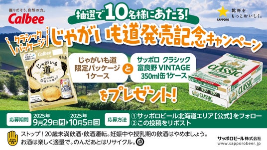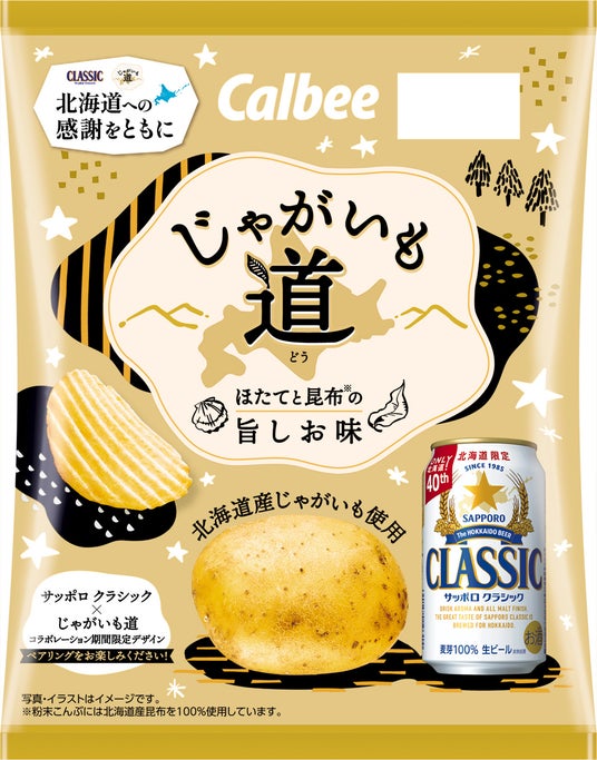 カルビー株式会社(本社:東京都千代田区、代表取締役社長兼CEO:江原 信、以下カルビー)は、北海道限定で販売中の『じゃがいも道 ほたてと昆布の旨しお味』を、2025年10月上旬から、サッポロビール株式会社(本社: 東京都渋谷区、代表取締役社長:時松 浩)の「サッポロ クラシック」とのコラボレーションパッケージに順次切り替えます。