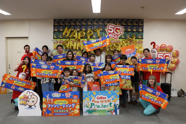 カルビー株式会社(本社:東京都千代田区、代表取締役社長兼CEO:江原 信)は、カルビーファンの皆さまと交流するCalbee『Fan With! Project』の一環として、2025年9月27日(土)に北海道千歳市の北海道工場で「カルビーポテトチップス」発売50周年を記念した小学生親子限定ファンミーティングを開催しましたので、お知らせします。イベントには約30名のファンの皆さまに参加いただきました。