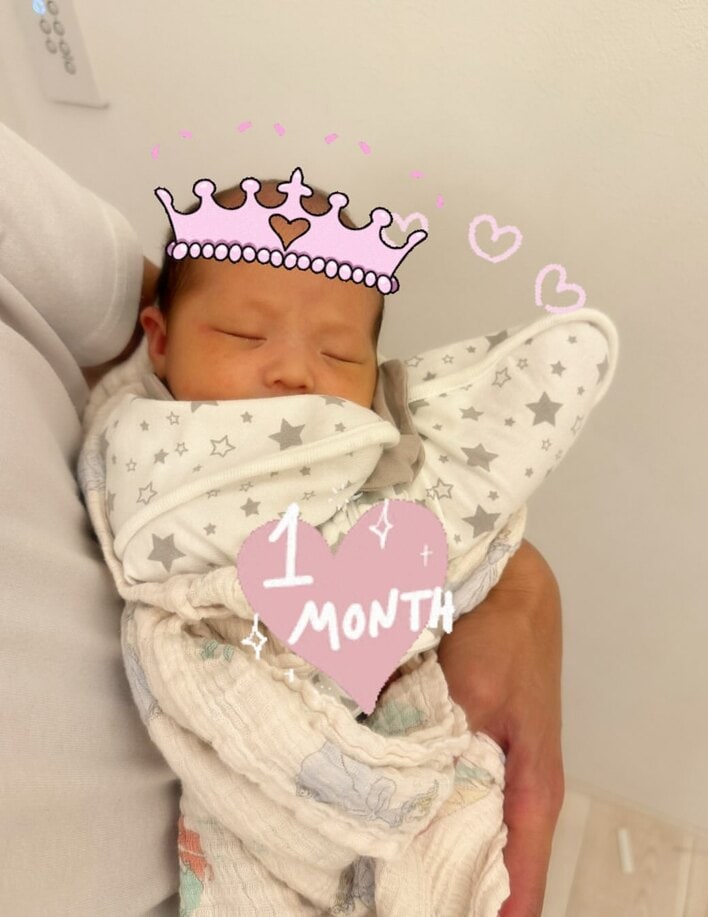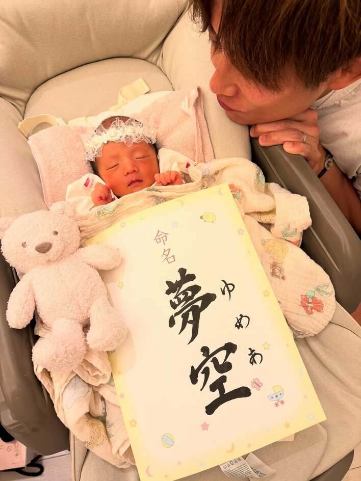 夢空ちゃんが誕生して1ヵ月経った9月8日の投稿では「早いなぁ もう新生児の時期が終わってしまった!」とつづり、眠たげな表情の夢空ちゃんを抱っこしたショットや…。