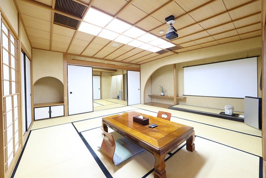 約70平方メートル の広い和室と洋室。各部屋にWi-Fiとプロジェクター完備で快適な作業空間。