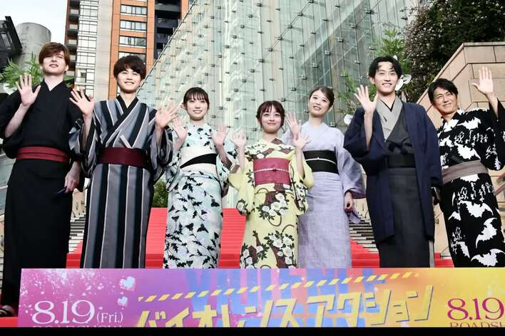 映画「バイオレンスアクション」の”完成披露試写会が7月6日に行われ、主演の橋本環奈さん、杉野遥亮さん、鈴鹿央士さんらキャスト陣が登場しました。