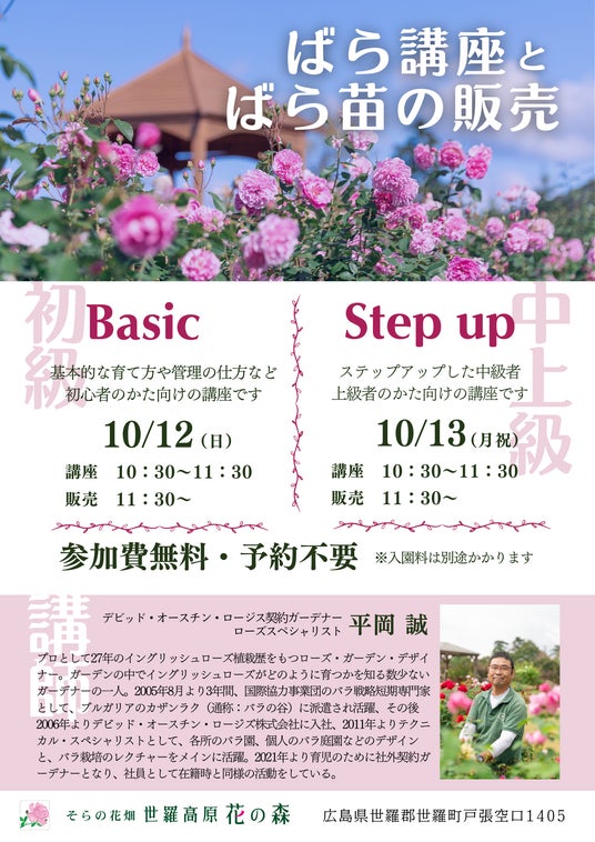 平岡誠さんによるばらの育て方講座です。ばらの苗の販売もあります。
