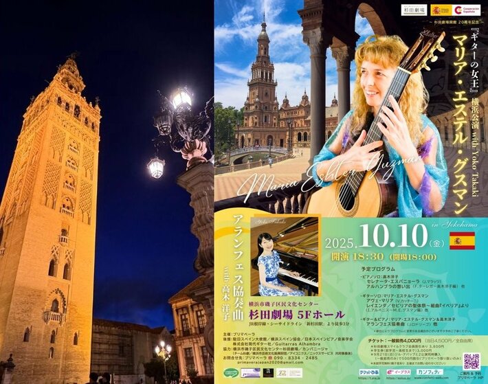 プリマベーラ主催、『ギターの女王』マリア・エステル・グスマン ツアーが2025年10月10日 (金)に横浜市磯子区民文化センター杉田劇場 5Fホール(神奈川県 横浜市磯子区 杉田 1-1-1)にて、2025年10月13日 (月・祝)に大田区民プラザ 小ホール(東京都 大田区 下丸子 三丁目1番3号)にて開催されます。
