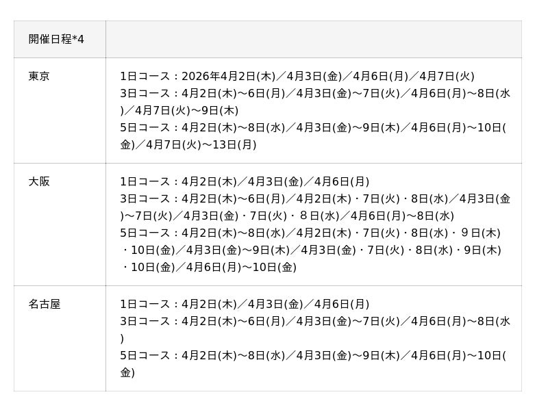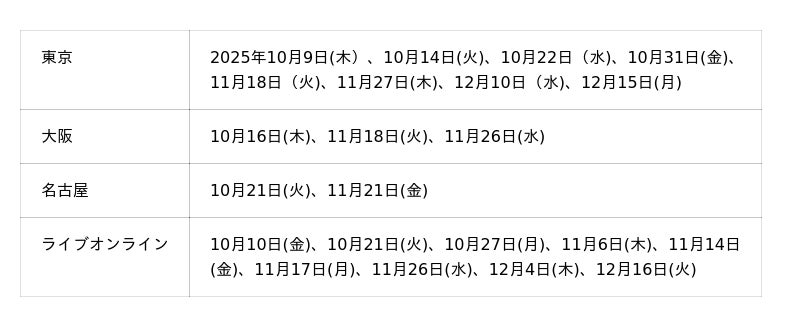 *4一部日程では、ライブオンラインでの開催、もしくは会場とライブオンラインとの組み合わせになっております。詳細はお問い合わせください。