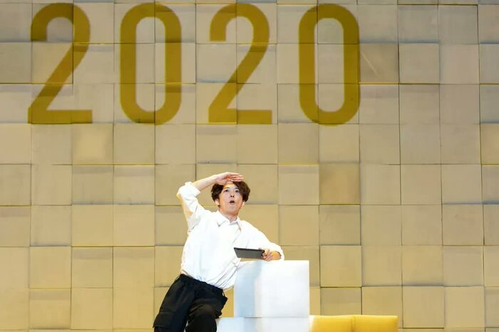 上田さんは「一人舞台にしようとなったときに、僕の頭から出たのが『2020』というキーワード。一人舞台であるが故に最後まで追い込めるということが三者それぞれから出まして。ギリギリまで彼を追い込んだ舞台になっております」とコメント。