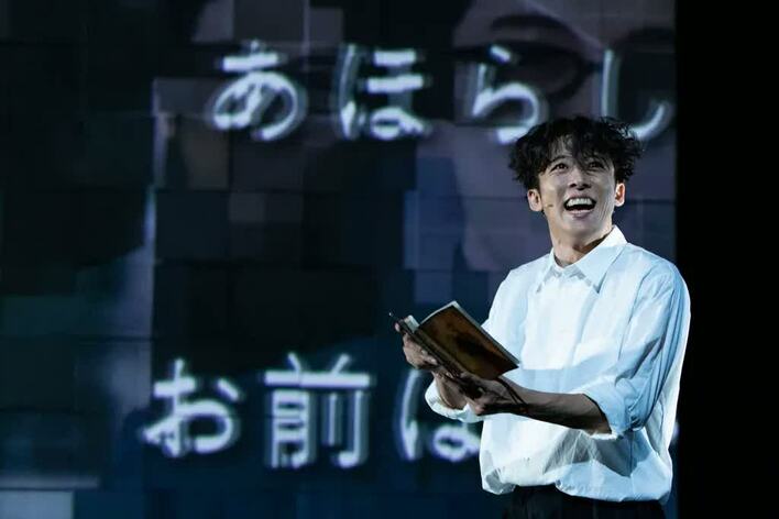 上田さんは「僕の作品って難解と言われがちなんです。さらに、(本ではなく)舞台なので読み返すこともできないんですが、通し稽古を見て(その完成度に)びっくりしました。文字にすると3万字以上あって、原稿用紙で100枚程度あるんですね。それを一人で、実際になりたっていてスゴいなと感動しました」と称賛。