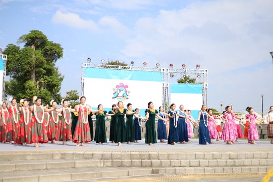 約1,000人の参加者が音楽に合わせて踊る様子は壮大です!当日参加も可能です。