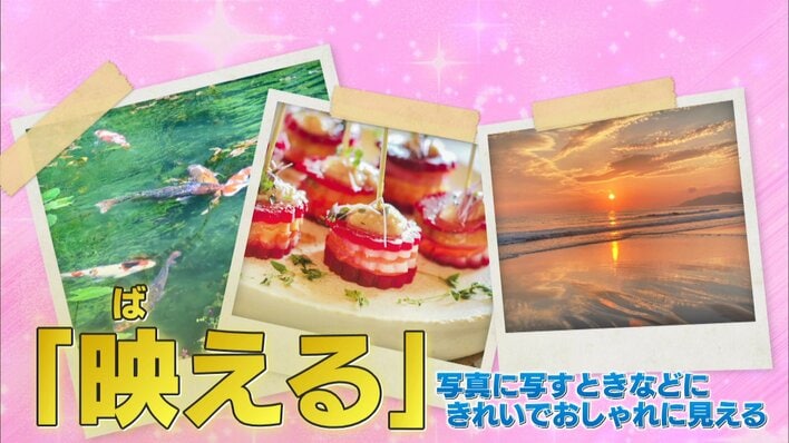 「写真を写すときなどに、きれいでおしゃれに見える」といった意味で使われる「映える(ばえる)」。