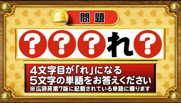 最初は「脳ミングアップクイズ」から、指令単語の問題。4文字目が「れ」になる5文字の単語を答えてください。