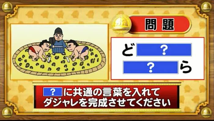 次は、ダジャレ穴埋めの問題。「?」に共通する言葉を入れてダジャレを完成させてください。