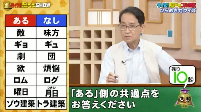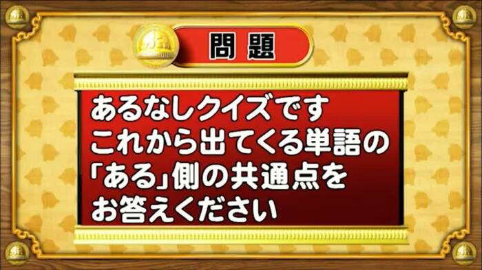最後は、あるなしクイズ。次の単語の「ある」側の共通点を答えてください。